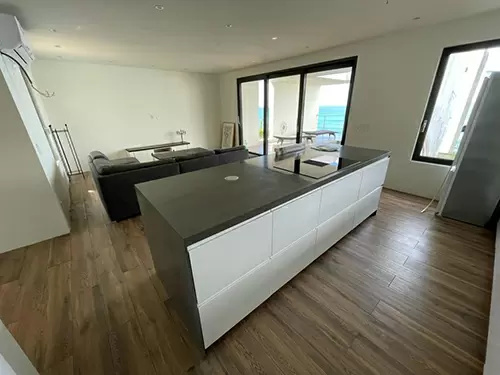 In januari 2021 is alles verstuurd en kon de klant er mee aan de slag. Toch deed het onverhoopte zich voor en kwamen ze tegels tekort. Dave: “Dat kan altijd gebeuren en hou je niet tegen. Gelukkig hebben we dit via zeetransport kunnen regelen met GLE Carribean Line en is ook dit netjes aangekomen. Tegelmegashop, de beste service ter land, ter zee en in de lucht!” Sinds september 2021 woont de klant in de villa en zijn zowel klant als Tegelmegashop zeer trots op het eindresultaat. “Fijne en snelle communicatie hebben geresulteerd in deze mooie foto’s en een prachtig eindresultaat. Zeker met projecten van dit formaat op grote afstand sta ik 24/7 klaar voor mijn klant om vragen snel te beantwoorden,” vertelt Dave. Ook laat de klant zelf nog weten: “Het is prachtig geworden en alles is van prachtige kwaliteit!”