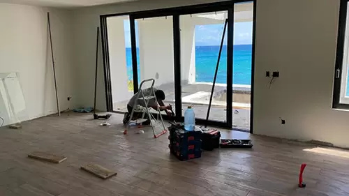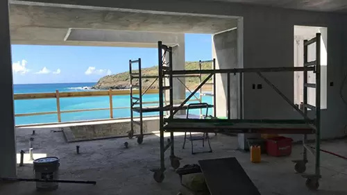 Het begon met een mail die enkele jaren geleden binnenkwam bij Dave Minten, manager bij Tegelmegashop. In deze mail gaf de betreffende klant aan in 2020 te willen starten met de bouw van een villa op Sint Maarten. Hij was op zoek naar materiaal voor de badkamers en vloeren en was zo bij Tegelmegashop uitgekomen. “Ik was aangenaam verrast,” laat Dave weten, “zoiets komt niet iedere dag binnen en dus heb ik me hier vol op gestort.” Hij nam vervolgens contact op met de klant om zichzelf en Tegelmegashop voor te stellen. Dit deed hij door middel van videobellen op een zondag, omdat ze te toch maken hadden met een tijdverschil van 5 uur. “Als je zoiets aan gaat op een afstand van 8000 kilometer, is vertrouwen voor beide partijen van essentieel belang. Je moet mekaar even gezien hebben. Je kunt immers niet zomaar even langsgaan om een los pak tegels na te leveren,” lacht hij.