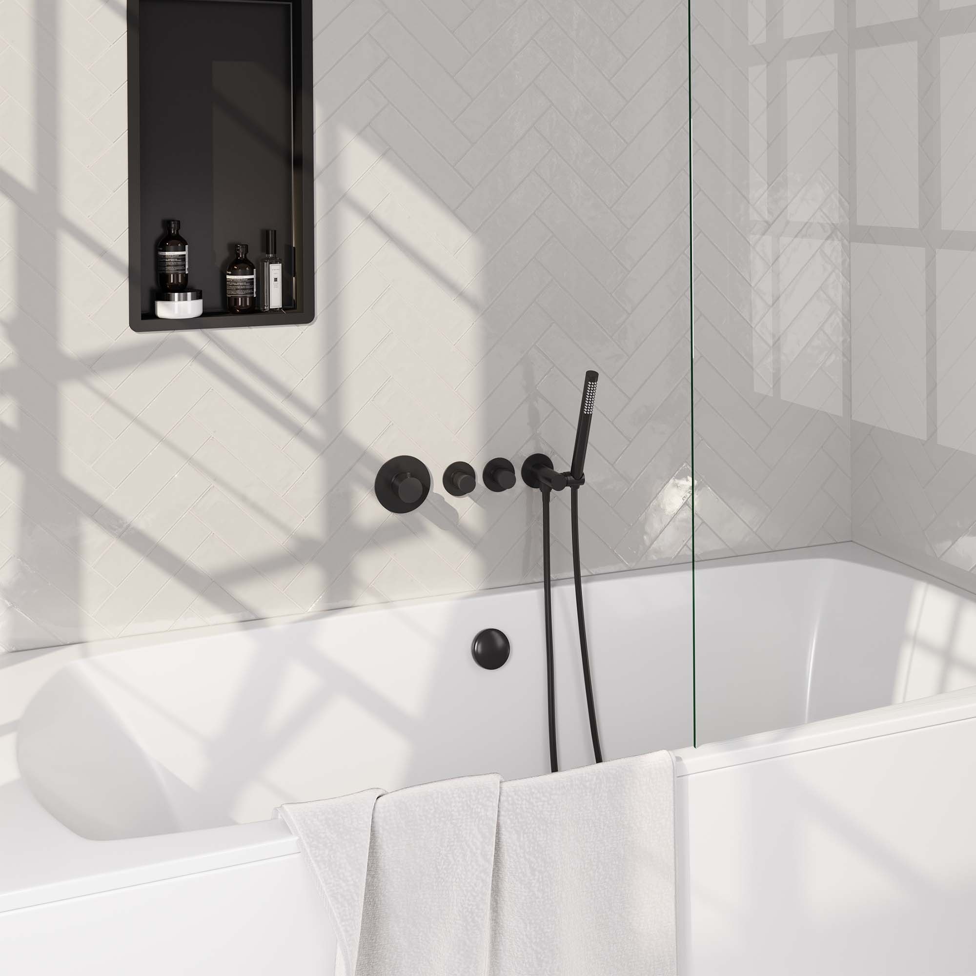 Maak uw ruimte compleet met de Thermostatische inbouw badkraan SET 01 met badvulcombinatie en handdouche mat zwart. Dit product combineert kwaliteit en functionaliteit, waardoor het een uitstekende keuze is voor elke ruimte.