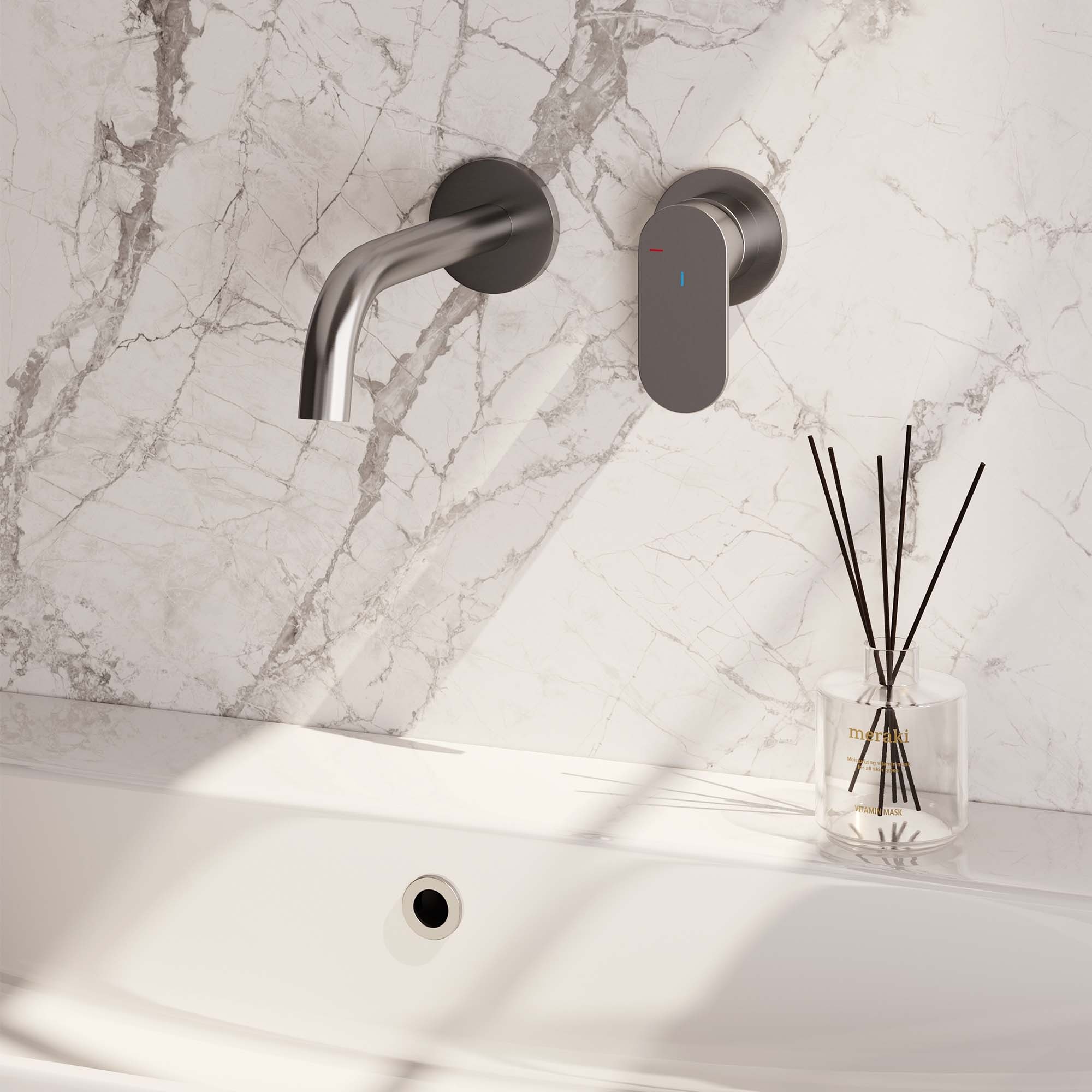 Maak uw ruimte compleet met de Inbouw wastafelmengkraan met gebogen uitloop en rozetten, model C1, RVS geborsteld PVD. Dit product combineert kwaliteit en functionaliteit, waardoor het een uitstekende keuze is voor elke ruimte.