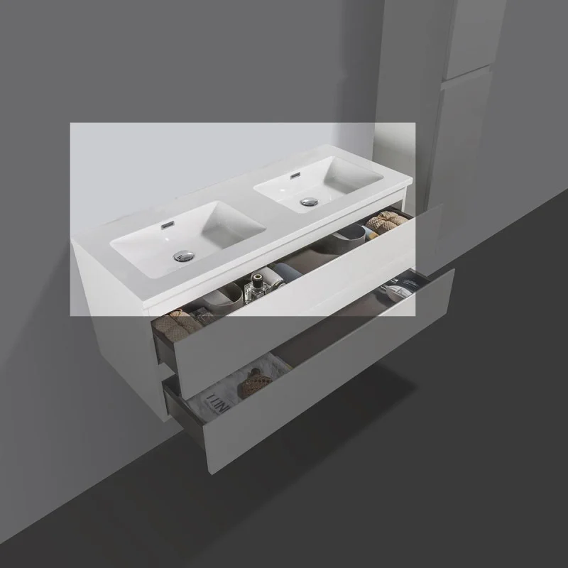 Mineraalmarmer wastafel Tieme wit zonder kraangat