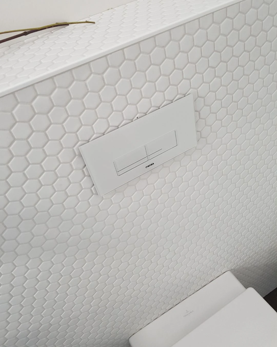 BeschrijvingGlanzende, witte zeshoekige mozaïektegel, gemaakt van geglazuurd porselein.