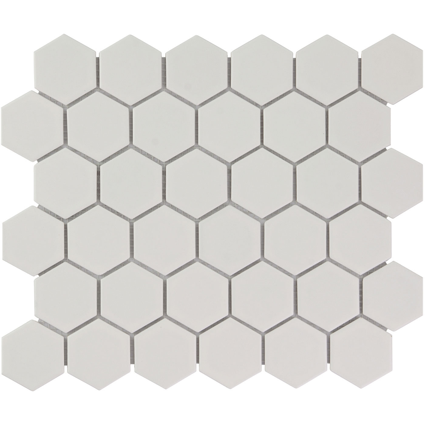 Grote zeshoekige mat wit geglazuurde porseleinen mozaïektegel.