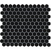 BeschrijvingMatzwarte zeshoekige mozaïektegel, gemaakt van geglazuurd porselein.