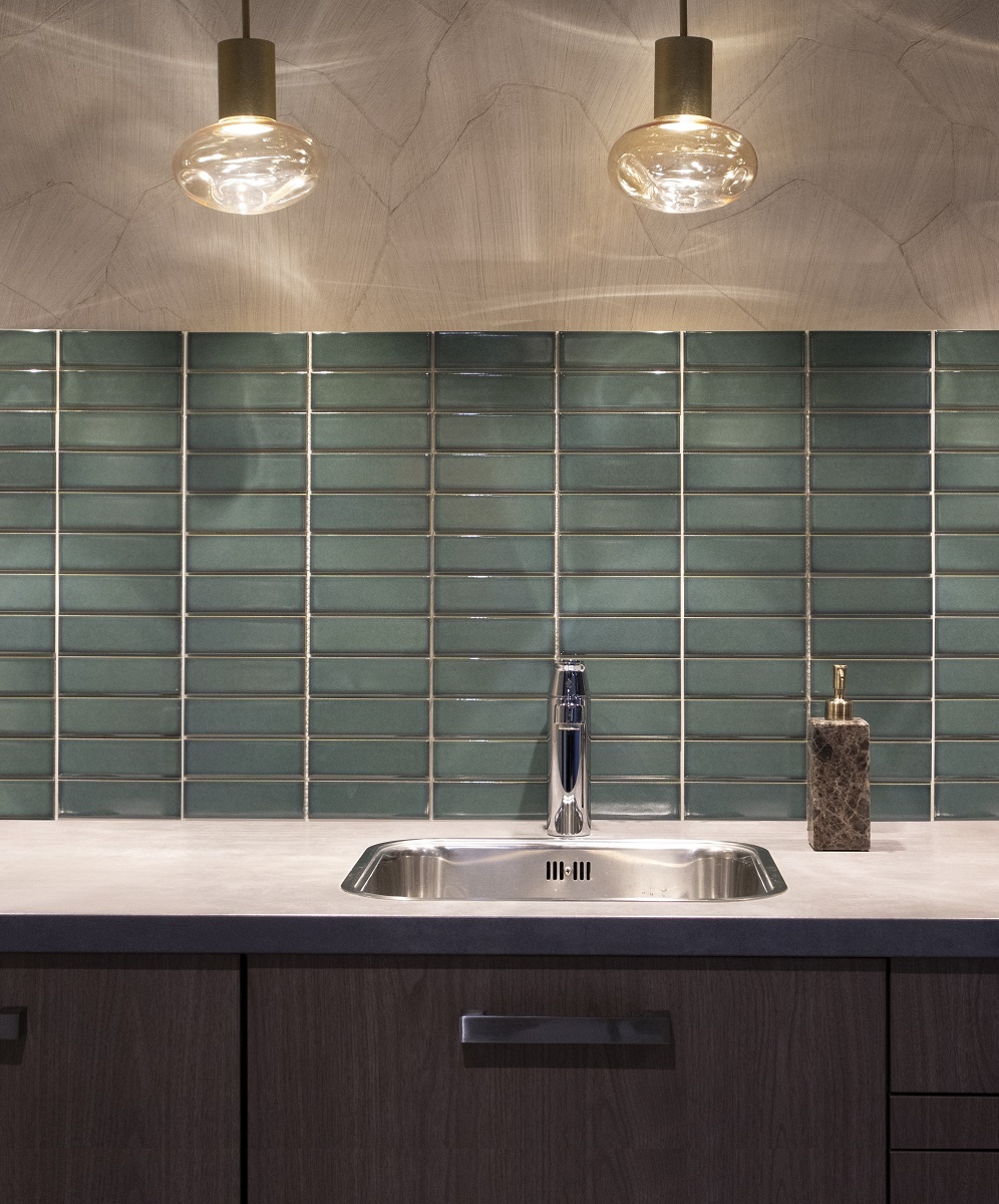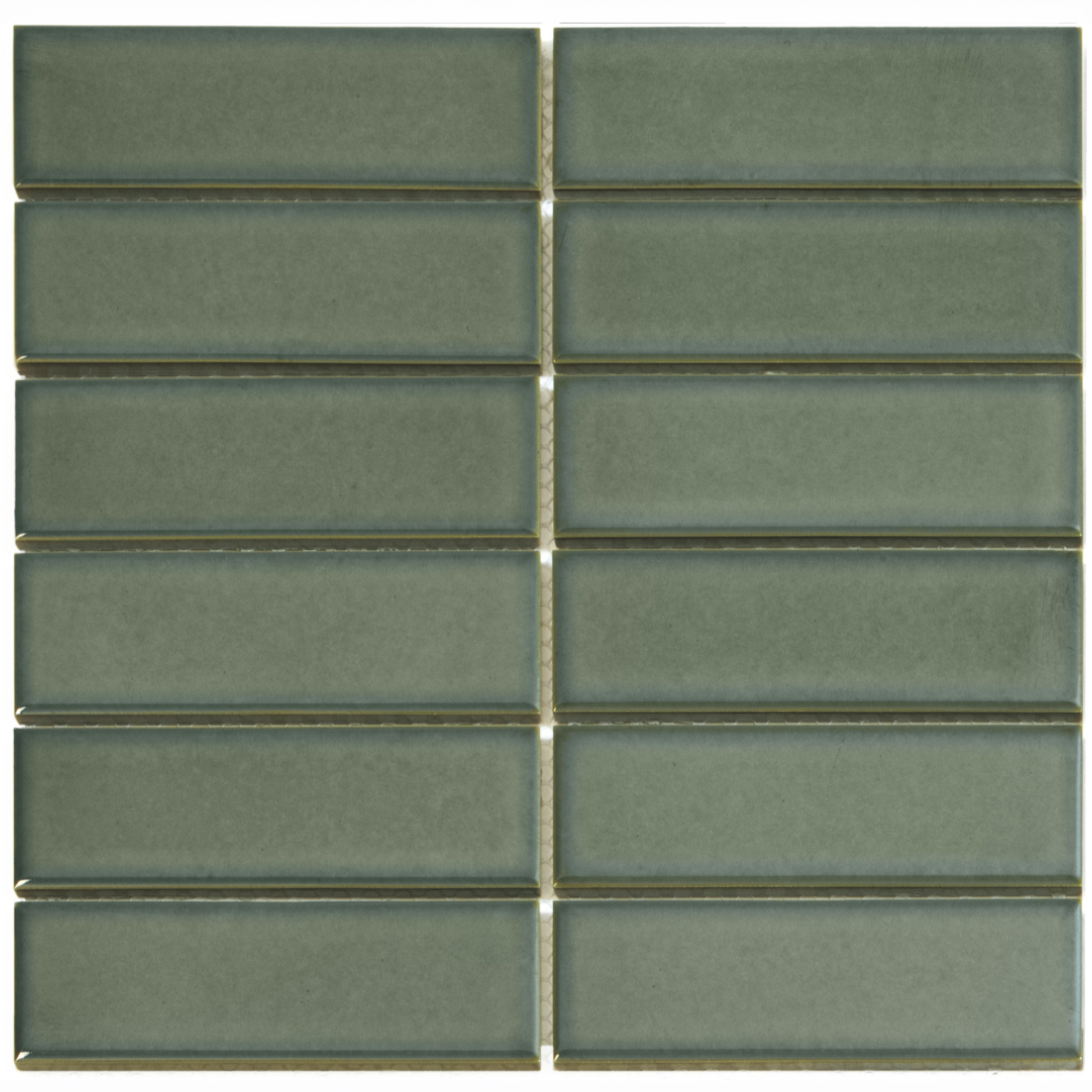 Strakke glanzende bosgroene, grote, rechthoekige mozaïektegel, gemaakt van geglazuurd porselein. Dit mozaïek uit de Barcelona collectie is zeer geschikt als wandtegel in bijvoorbeeld een modern of Scandinavisch interieur, maar kan ook prima gebruikt worden als vloertegel in ruimtes waar blootsvoets wordt gelopen.