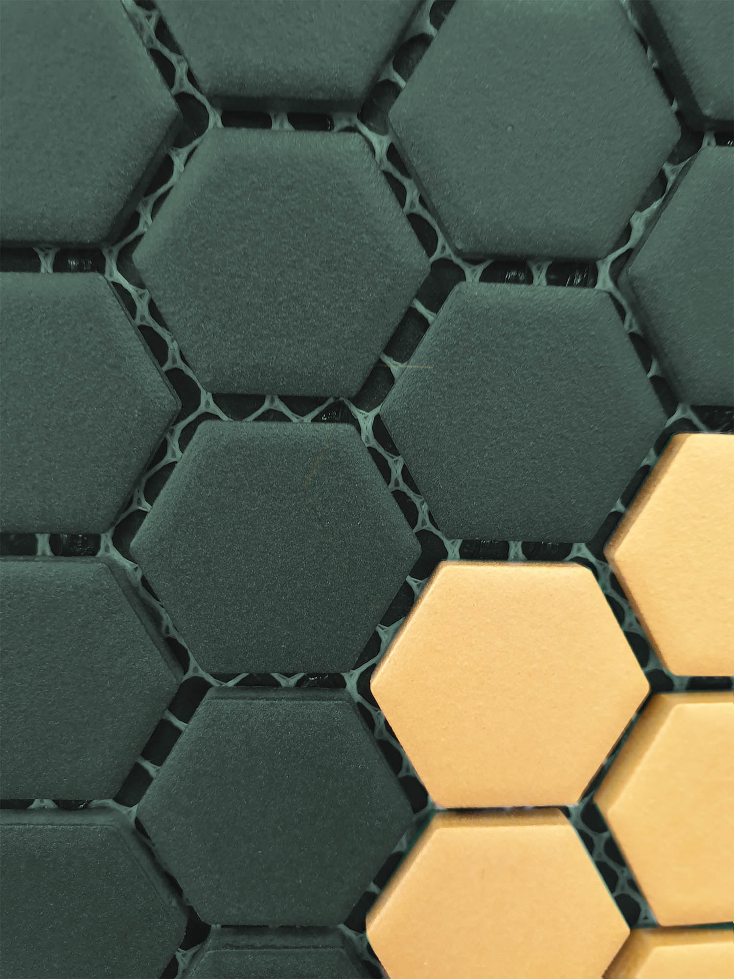 Mozaiek Hexagon Mat Tuscany Gold 2,3x2,6 is een prachtige mozaïek hexagon mat in de kleur Tuscany Gold. Perfect voor een stijlvolle en luxueuze uitstraling.