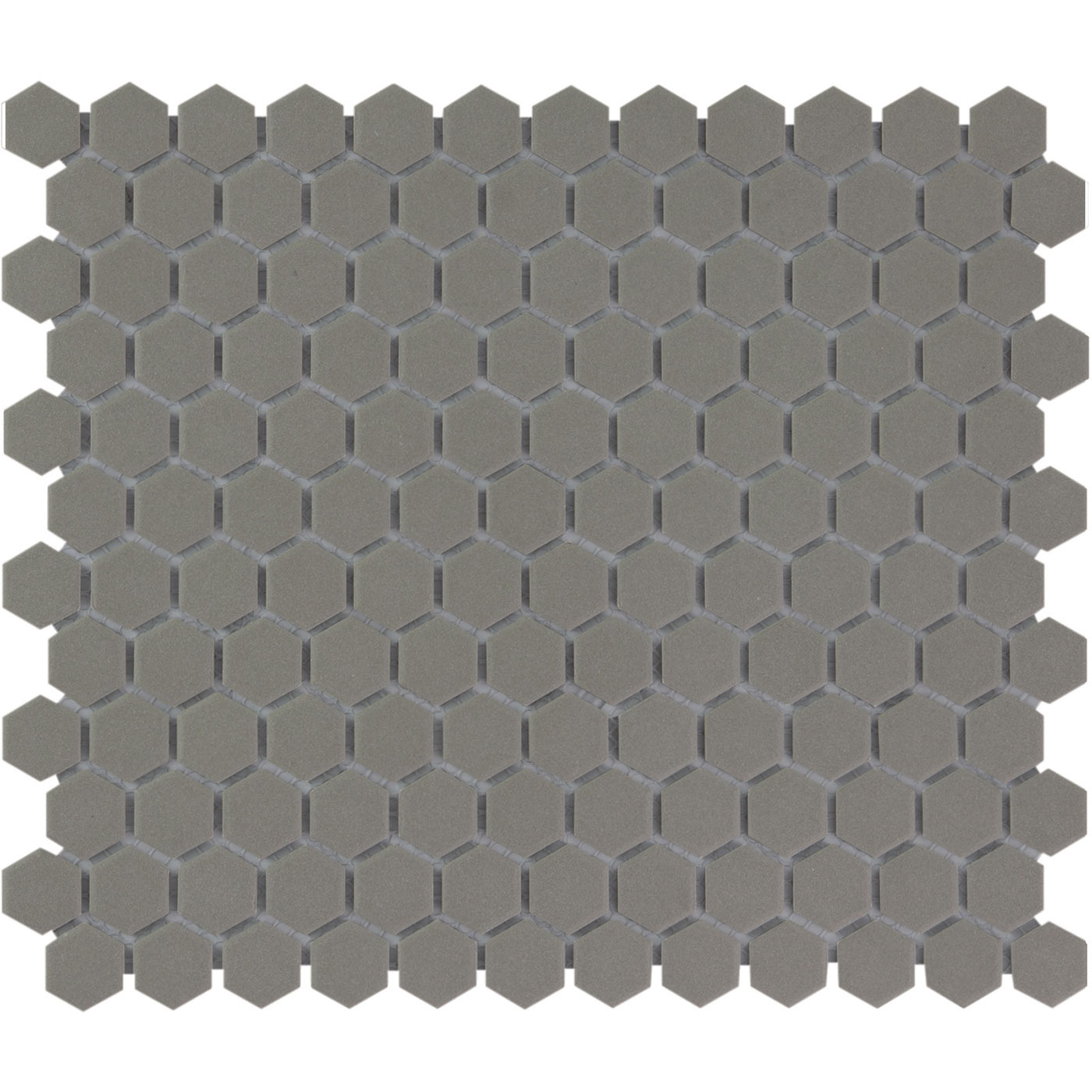 BeschrijvingZeshoekig gevormd, grijs, mat mozaïek uit de London collectie van The Mozaïek Factory.