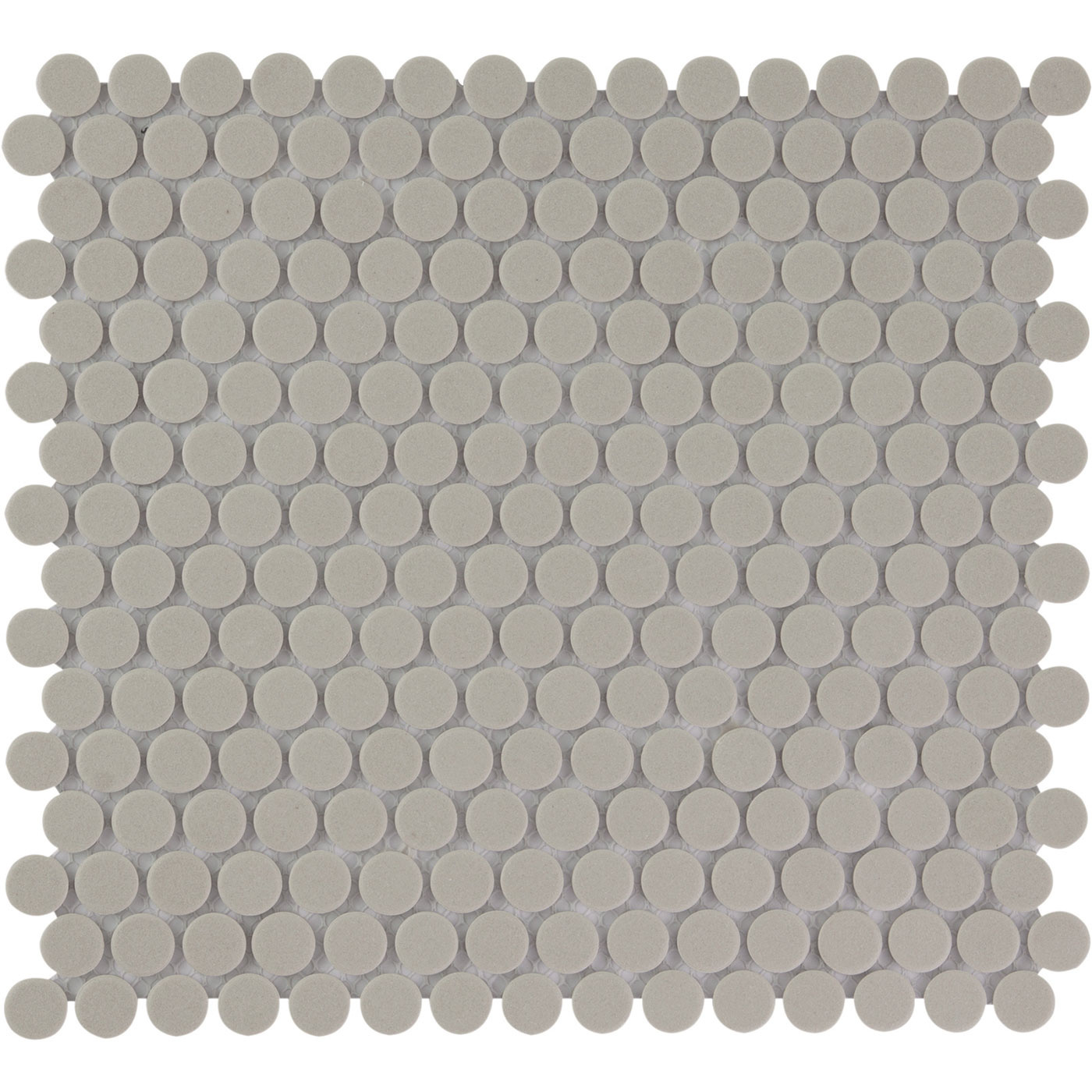 Ronde, grijze matte mozaïeken uit de collectie The Mozaïek Factory London.