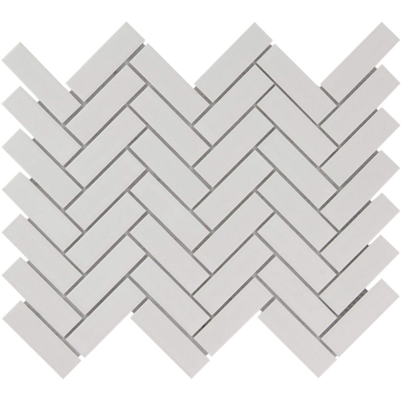 BeschrijvingMatwitte visgraatmozaïektegel, gemaakt van geglazuurd porselein. Dit bijzondere mozaïek is zeer geschikt als wandtegel, maar kan ook toegepast worden op de vloer van ruimtes waar blootsvoets wordt gelopen.