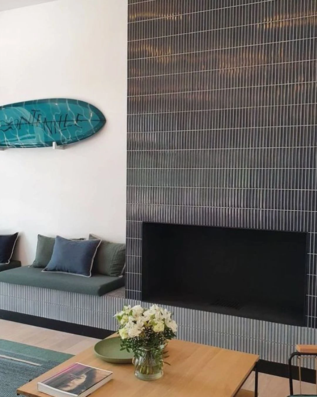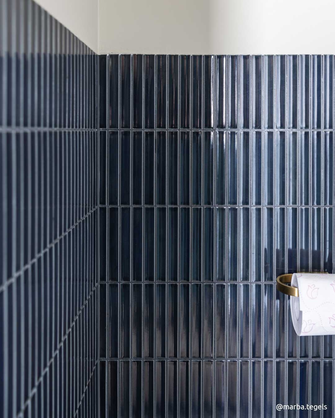 BeschrijvingGlanzende blauwgrijs gekleurde mozaïektegel met een lange rechthoekige vorm, zoals de bekende chocoladereep. Dit Kitkat-mozaïek is zeer geschikt als wandtegel en voor het betegelen van gebogen oppervlakken zoals werkbladen of tralies.