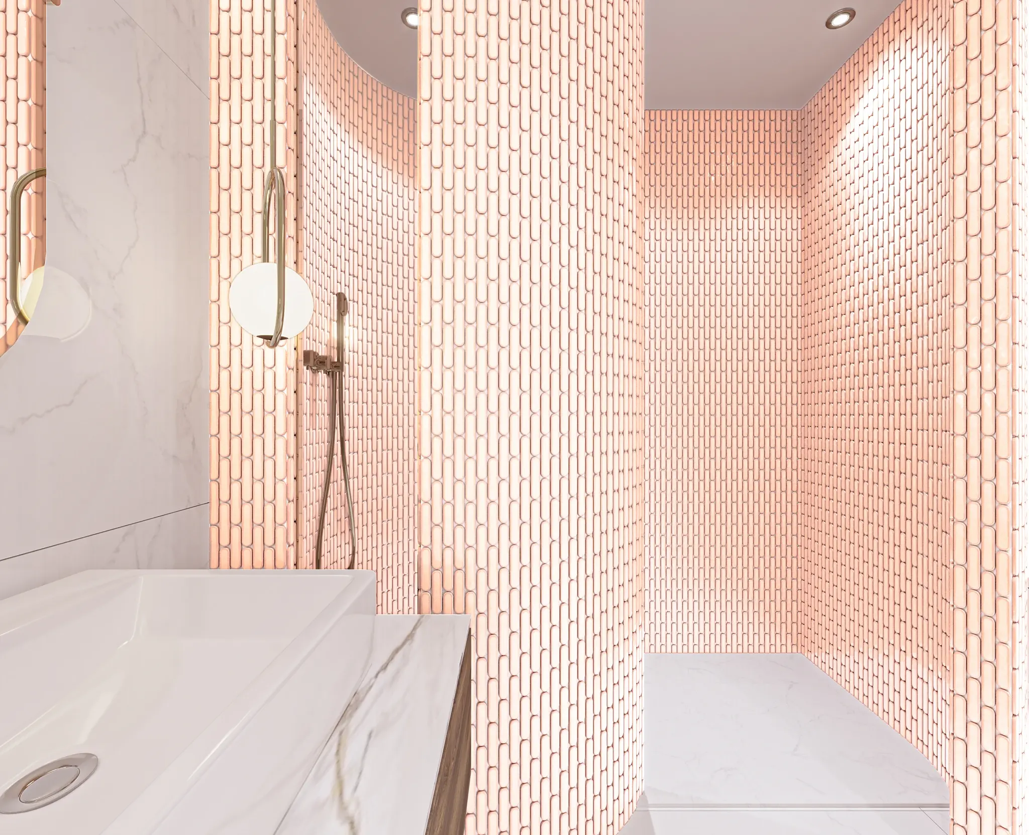 BeschrijvingDeze glossy roze ovale mozaïekvinger is nu uit voorraad leverbaar! Deze ovaal is een compleet nieuwe vorm mozaiek uit de Sevilla collectie van The Mosaic Factory: een lange vinger!