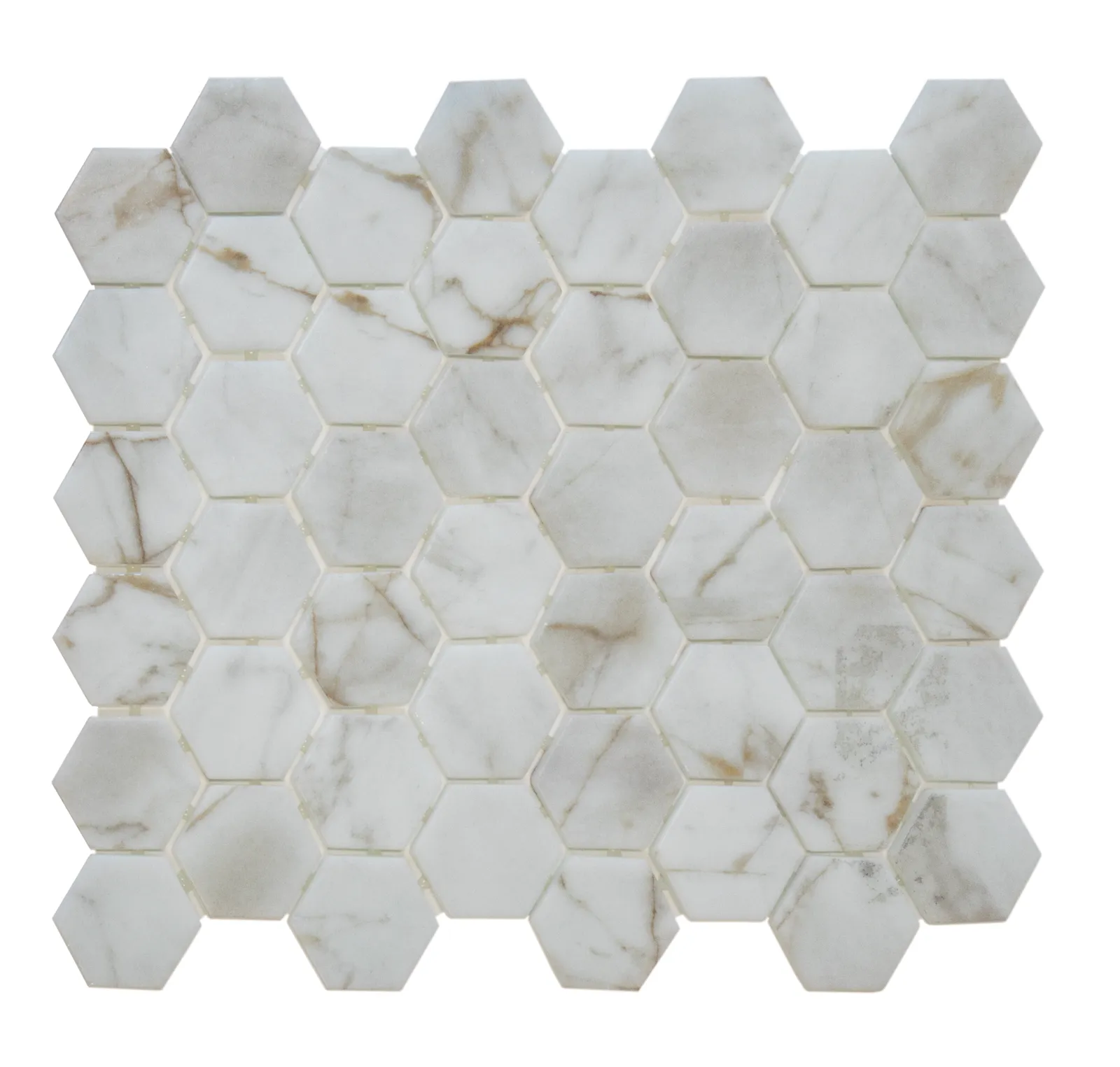 Mozaiek Valencia Hexagon Marmerprint Wit 4,4x5,0