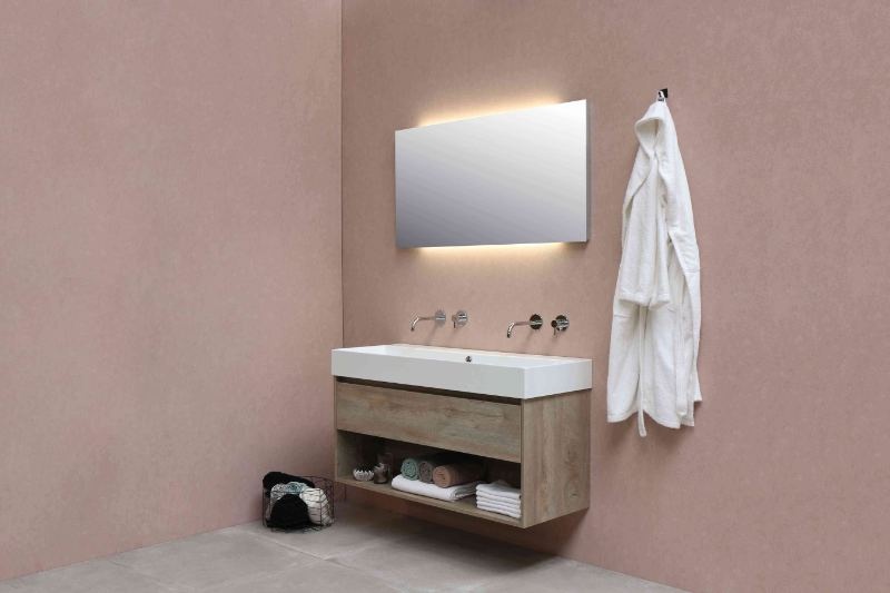 Getoond model: 120cm breed, zonder kraangaten, met onderkast met enkele-lade en open schap in de kleur Raw Oak. Exclusief spiegel, kranen en kolomkast. Neem gerust contact met ons op voor advies, of om je te helpen met het uitzoeken van jouw ideale badkamer.